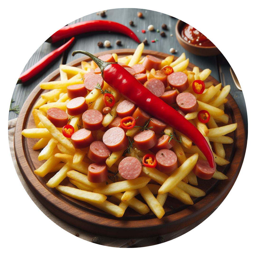Salchipapa Tradicional con 2 cremas a elección para 1 persona